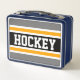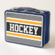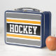 HOCKEY Grey Black White Yellow Racing Stripes Metal Lunch Box