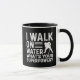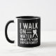 White text mug on a black background that you can change to whatever colour you want, reads I Walk On Water What's Your Superpower?