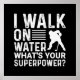 White text poster on a black background that you can change to whatever colour you want, reads I Walk On Water What's Your Superpower?