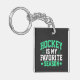 Hockey keychain with green and white text on a black background reads Hockey is My Favourite Season!