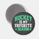 Hockey magnet with green and white text on a black background reads Hockey is My Favourite Season!