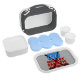 Great quality. Love all the containers and ice pack included. Do not like that both sides open up. Not secure. The image was very unique with both of my son's favorite activities. Very excited to use. Was surprised to find combination!