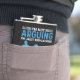 Hockey Player Penalty flask with white and blue text on a black background reads I'm Not Arguing I'm Just Explaining Why It Wasn't a Penalty! Hockey humour flask, sure to be a hit with any hockey player also features blue silhouette hockey players.