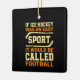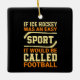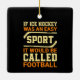 Hockey Versus Football ornament features text of yellow and gold and two hockey sticks. This hockey player ornament reads If Ice Hockey Was an Easy Sport It Would Be Called Football!