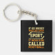 Hockey Versus Football keychain features text of yellow and gold and two hockey sticks. This hockey player keychain reads If Ice Hockey Was an Easy Sport It Would Be Called Football!