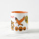 Fun Party mugs for Fall Festivals, Home Accents, Halloween, House warming. Kid's party and more! The illustration features Wandering witch, magic potion, raven, jack o lanterns, balloons in a mug for the spooky festival. The TEXT 'Hocus Pocus' can be easily customised or removed.