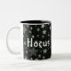 This Halloween Mug a starry background and the text Hocus on one side and Pocus on the other.