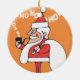 A suave Santa puffs "Ho Ho Ho" from his pipe.