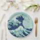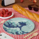 This is a drawing of blue, cyan and aquamarine extreme sea waves with foam and spray, based on the work of Katsushiki Hokusai (1760-1849).