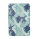 This is a pattern of blue, cyan and aquamarine sea extreme waves with foam and splashes, based on the work of Katsushika Hokusai (1760-1849).