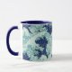 This is a pattern of blue, cyan and aquamarine sea extreme waves with foam and splashes, based on the work of Katsushika Hokusai (1760-1849).