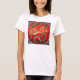 Hokusai Gold Japanese Dragon t-shirt. Ukiyo-e produced during the Edo Period. Mythological creatures were a frequent theme of Hokusai’s art, this gold dragon is one of his most expressive mythological works. The dragon sits on a red background surrounded with wild blue waves. A great gift for fans of Katsushika Hokusai, Japanese mythology, Japanese dragons, and Japanese art.
