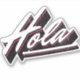 Simple retro style "Hola" text design with colourful grunge letters and underline