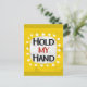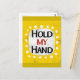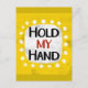 "Hold My Hand" is a cute inspirational or motivational quote with a white accent shape surrounded by white textured whimsical dots.