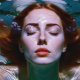 "Holding My Breath" - Women In Water. A moment in time when you want to hold your breath, to keep things absolutely still, and just stare. Pain or joy can both be submersive. In this depiction a woman's head is surrounded by crystal clear water and bathed in bright sunlight.