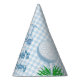 Hole in one golf themed 1st birthday party monogrammed printed party hat, pastel blue gingham handrawn sketch golf cart golf balls birthday party personalised paper hats, golf birthday personalised party decor, boys 1st birthday party decor, first birthday party printed party hats personalised golf party supplies