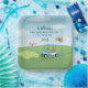 You will so enjoy this charming and unique paper plate - with that wonderful golf cart and gold and blue balloons-- completed with his script name. Any design questions just send a chat or an email to charmdesignstudio@rcn.com and we'll be delighted to assist.