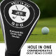 Elevate your golf game with our Customised Golf Club Head Cover! This creatively crafted head cover boasts a unique design that truly stands out. Imagine two coordinating crossed golf clubs set against a crisp white background encircled by an additional ring. Inside this outer circle, you’ll discover the words “Hole in One,” commemorating that remarkable achievement, along with the date. Right below the clubs, there’s a designated area where you can proudly showcase your golf course club’s name and specify the exact hole where your hole-in-one occurred. Whether you’re celebrating a special moment or simply expressing your passion for the sport, this head cover is a stylish choice. Customise it further by adding your two or three initials in elegant white lettering on a ribbon, completing our exclusive crossed clubs motif design! All colours in this unique design may be customised!