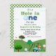 Invitations for children's birthday parties include a cute golf course, golf accessories, and the phrase "hole in one." A golf theme was used for this sweet first birthday celebration.