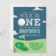 A colourful 'Hole in One' Golf themed first birthday invitation to help celebrate your little boy's first birthday. Colour palette features shades of green against a deep blue sky. Please message me for custom requests.