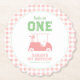 Hole in One Pink Check Girl First Birthday Paper Coaster