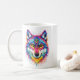 Colorful mug with an artistic wolf design in watercolor style. A real highlight from Anja and Sarah Designs for any coffee table.
