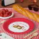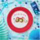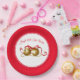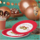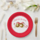 Holiday paper plate shown with a cute festive Christmas jingle bells print.