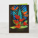 WOW! This non-religious winter holiday greeting card is really different and striking! The cover art is from an original painting by digital artist, Leslie Sigal Javorek, which features a brightly coloured arrangement of carved wood Anthuriums in vibrant reds & greens that is gorgeously set off by the stained glass window behind it which has a rich, royal blue & black African Tribal motif. Be sure to personalise the greeting inside when ordering!