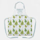This Holiday Baking Crew Christmas Trees Custom Name Apron features a festive green and gold Christmas tree pattern with light blue snowflakes with your Family Name, Title, and First Name, so each family member can have their own personalized apron for your holiday baking festivities.