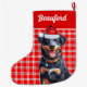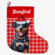 Holiday Beauceron Red Plaid with Dog's Name Large Christmas Stocking