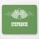 Stylish and fun Holiday Swirls and Bells Mousepad in green featuring a pair of bells adorned with stars and cascades of elegant swirls. This unique Christmas mousepad will add holiday charm to your workspace! Easy to customise, simply add the personalised text of your choosing. Click on the "Customise It" button to find additional personalisation options.