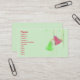 Simple holiday business card design of two bells, one green and one red, on a green background.