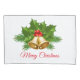 Pillowcase is shown in a white background with a festive holiday bell print.
