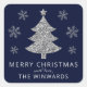 Holiday Blue & Silver Glitter Christmas Tree Square Sticker