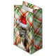 Dog lovers will adore receiving or giving this cute and funny holiday gift bag featuring an adorable Boxer wearing festive accessories on a plaid of shades of green and red.