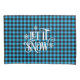 Pillowcase is shown in a black and blue buffalo plaid let it snow print.