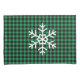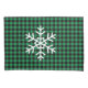 Pillowcase is shown in a black and green buffalo plaid snowflake print.