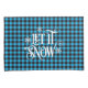 Pillowcase is shown in a black and blue buffalo plaid let it snow print.