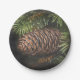 Holiday Chalk Drawn Pinecone and Pine Needles Paper Plate