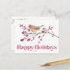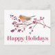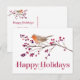 Happy Holidays! Joyous little bird perching on a branch adorned with berries. Beautiful typography Add your own message on the address side to share your own greeting.