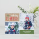 Affordable custom printed holiday photo cards with simple templates for customisation. This modern design has a festive mix of typography in red, green and white on a faux kraft paper background. The wording says "Holiday Cheer". Personalise it with your photos and add your family name and the year. Reverse side has space for additional photos and text. Use the design tools to edit the text, add more photos and create a unique one of a kind Christmas photo card design.