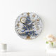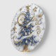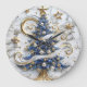 A beautifully designed Christmas tree clock features intricate detailing in gold and silver, with twinkling stars and elegant swirls adorning its branches.