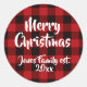 Holiday cheer, red buffalo plaid pattern, classic round sticker