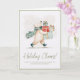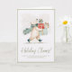 Celebrate the season with a cheerful watercolor illustration featuring a stylish polar bear on the move. Dressed in a green scarf sprinkled with white stars and blue winter boots, the bear carries a towering stack of wrapped presents in festive hues—red polka dots, golden ribbons, and teal stripes. The soft beige and grey background evokes a peaceful winter day, with gentle snowfall adding a touch of magic. The message—“Holiday Cheers! Here's to a season filled with peace, joy, and cherished memories!”—wraps the scene in warmth and wonder, making this card a perfect way to share heartfelt holiday spirit.