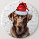 Holiday Chocolate Lab Dog on Woof Background 6 Cm Round Badge