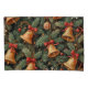 Golden Christmas Bells and decorative ornaments on Christmas tree background.