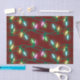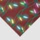 Holiday Christmas lights themed tissue paper with bulbs in multiple colours on dark red.