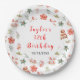 This elegant and festive plate features watercolor cake stands, red poinsettia flowers, gingerbread cookie jar, holly and foliage. The text combines handwritten script and sans serif fonts for a stylish and modern look. This is perfect for Christmas birthday parties.