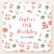 This elegant and festive coaster features watercolor cake stands, red poinsettia flowers, gingerbread cookie jar, holly and foliage. The text combines handwritten script and sans serif fonts for a stylish and modern look. This is perfect for Christmas birthday parties.