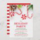 Colourful Holiday Christmas Winter Party Candy Cane Pinecone Red and White Stripes Invitation